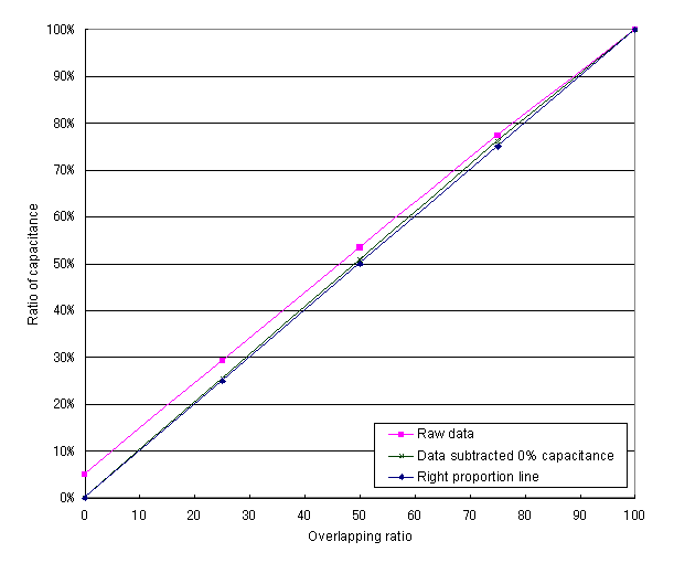 capacitor changes in proportion to the overlapping ratio of electrodes.